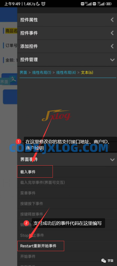 4、支付成功的的事件在【pay.iyu】界面的Restart重新开始事件