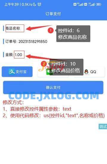 2、商品价格直接修改【pay.iyu】界面的控件id:10的文本属性(可以用us代码修改)