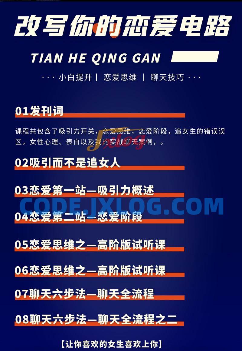 涛哥恋爱地图课,改写你的商爱电路 JXLOG 2023-04-25 综合教程 81 0 推广 免10名免备案国外域名注册 免10名免备案国外域名注册 免签免挂码支付平台 网站加速CDN免费送30G/月 网站加速CDN免费送30G/月 文字广告位招租 ------正文内容展示,开始阅读新内容------ 课程共包含了吸引力开关,恋爱思维,恋爱阶段,追女生的错误误区,女性心理、表白以及我的实战聊天案例。 资源下载下载价格免费立即购买 ------本页内容已结束,喜欢请分享------ 海外服务器25/月 海外服务器25/月 免签免挂码支付平台 各类精品菠菜大全 各类精品qp资源 文字广告位招租 感谢您的来访,获取更多精彩文章请收藏本站。 0 赏 0 PRPS两性交友实战恋爱精品教程综合教程课程
