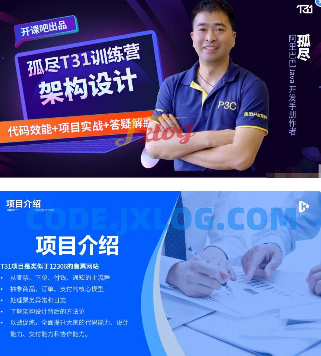 孤尽老师现任开课吧首席技术官,前阿里P8,在阿里期间任研发工程师、架构师、技术主管等角色,在大数据、高并发、研发效能等领域有着长期深耕经验,同时也是阿里巴巴代码规约主要编写者。 T31训练营是一个为期31天的项目课程,从0到1实现一个购票项目。内容包含需求分析,架构设计,代码实现,代码评审等。 升职加薪!!年薪百万不是梦!!!