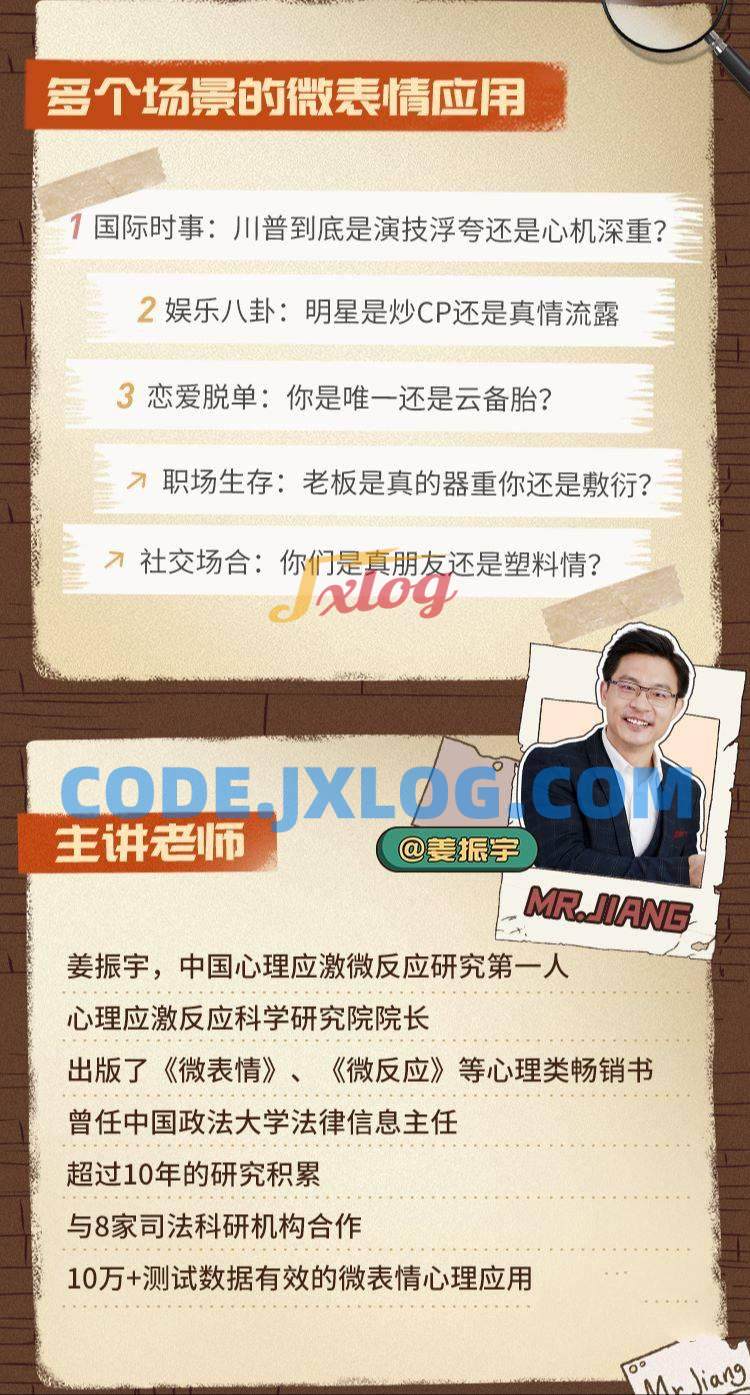 是时候展现真正的微表情分析技术了!姜振宇老师将把十年来微表情研究总结到这套课程中