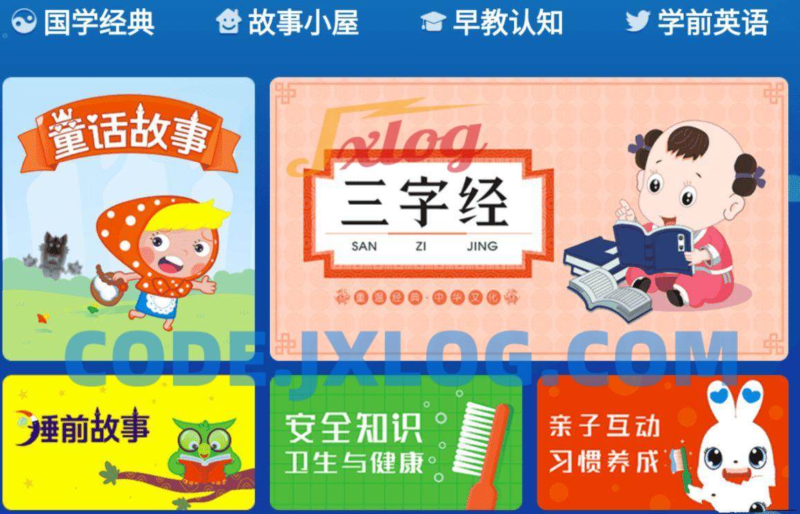 软件无需登录,打开以后可以看到,它的资源;包含了:国学经典、故事小屋、早教认知、学前英语;像什么童话故事、三字经、安全教育各种小朋友学习的内容都有。内容还是很全的,百家姓、千字文、弟子规、三字经以及唐诗三百首也都有。喜欢听故事的小朋友也不要错过:睡前故事、童话故事、成语故事、伊索寓言、笑话故事等等。想学习英语的话,你可以最简单的开始认识:食物、大自然、基本常识等等。