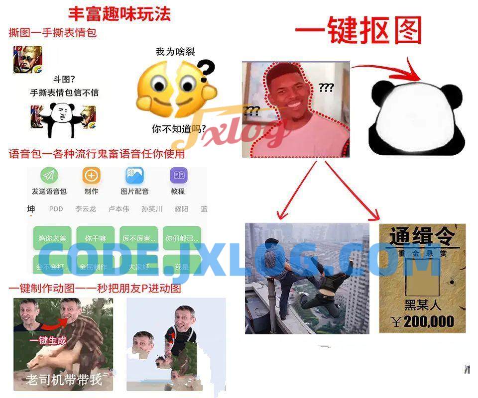 可以让您一言不合就斗图的APP。帮您制作各种有趣搞笑的表情图片,可用熊猫头、金馆长等许多流行表情进行贴图。可以抠取朋友的脸,贴到其它图片上,有趣的恶搞您的朋友。还可以手撕表情,想撕什么就撕什么,斗图无压力。