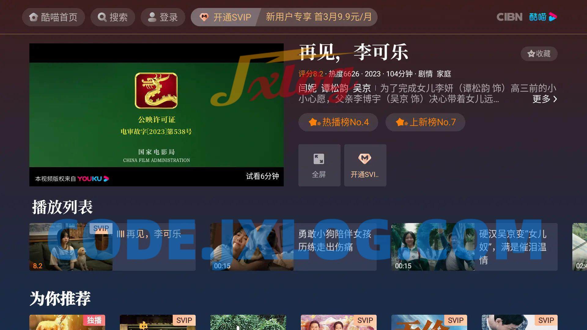 CIBN酷喵影视TV v9.0.1.4去广告纯净版 JXLOG 2024-01-26 APP应用 72 0 推广 免10名免备案国外域名注册 免10名免备案国外域名注册 免签免挂码支付平台 网站加速CDN免费送30G/月 网站加速CDN免费送30G/月 文字广告位招租 ------正文内容展示,开始阅读新内容------ 软件介绍 CIBN酷喵影视,您的家庭影院新选择,是一款专为电视大屏幕打造的网络视频客户端软件,由优酷和CIBN共同协作推出。该APP基于精心设计的用户界面,提供了符合大屏幕视觉效果的人机交互体验,保证了用户在家庭环境中可以享受到舒适和休闲的视频娱乐时光。 关于版本 去启动广告、去播放广告、去升级提示 资源下载下载价格免费立即购买 ------本页内容已结束,喜欢请分享------ 海外服务器25/月 海外服务器25/月 免签免挂码支付平台 各类精品菠菜大全 各类精品qp资源 文字广告位招租 感谢您的来访,获取更多精彩文章请收藏本站。 0 赏 0 APP应用PRPS影视视频设计软件工具