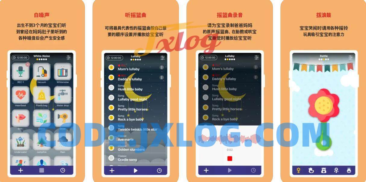白噪音,摇篮曲,婴儿玩具,唱生日歌,动物/交通工具/乐器声音