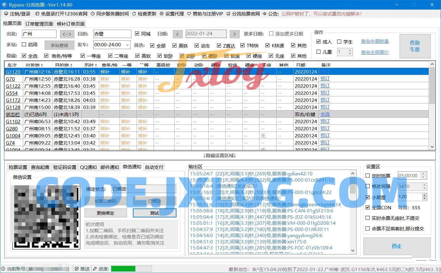 12306分流抢票软件是一款个人开发的免费抢票软件,12306Bypass分流抢票软件是市面上相对好用且性价比不错的电脑端抢票软件,可以自动识别12306验证码,支持抢候补票,自动付款,远程打码,适合挂机自动抢票.
