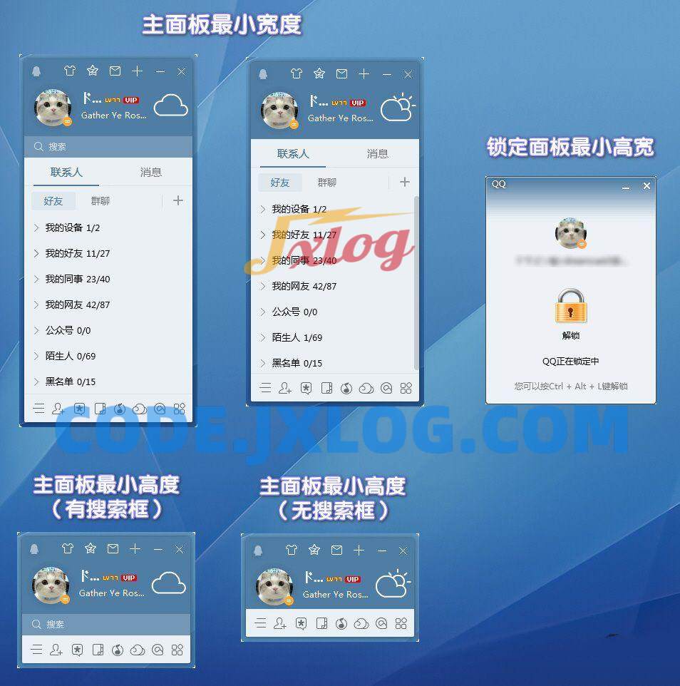– 去除QQ秀的状态下,保留群对话框隐藏侧边的小箭头 (由于小箭头是共用素材,好友对话框的小小残留无伤大雅)
