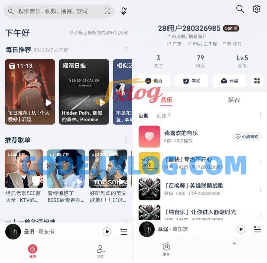 常用的功能都比较齐全,每日推荐、听歌识曲、云盘音乐都有,没有乱七八糟的东西。