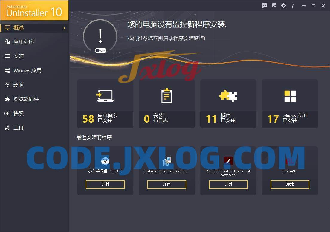 Ashampoo UnInstaller是一款非常优秀的程序卸载反安装工具!很多软件在卸载后都会在系统文件夹、自身安装路径或系统注册表留下大量的残余信息,无法清除!长此以往,注册表冗余信息过多,Windows 系统将会变得越来越臃肿和缓慢。而Ashampoo Uninstaller 便可以很好的解决此问题!它可以监视系统在安装软件前后所发生的变化,当你卸载软件时,Ashampoo Uninstaller 会精确的确定软件的位置和注册表信息,保证在删除软件之后,不会在系统上的任何地方留下任何痕迹。