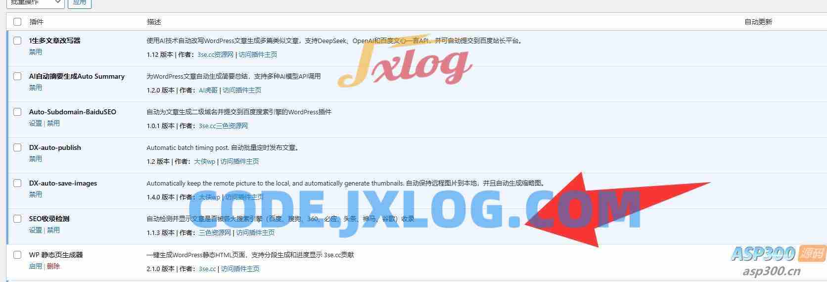 5. 找到”SEO收录检测”插件并点击”启用”
