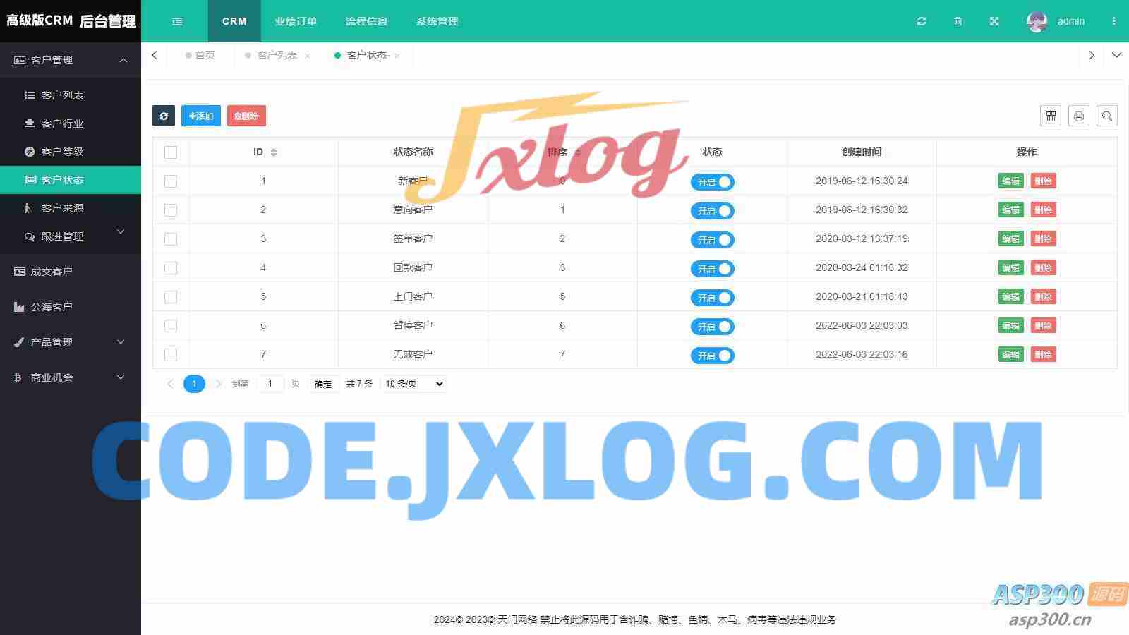 支持批量删除客户,抢客户,客户公海,客户线索,客户来源,客户地区,
