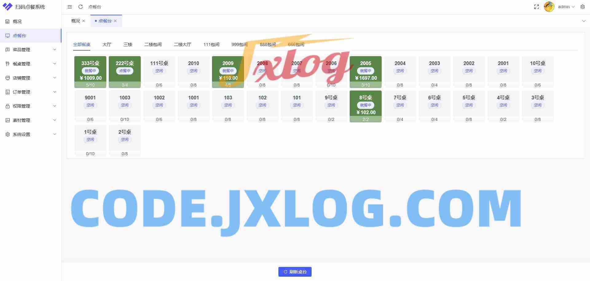 餐桌状态实时监控:餐桌的使用情况可以实时的展示出来,无需手动刷新,