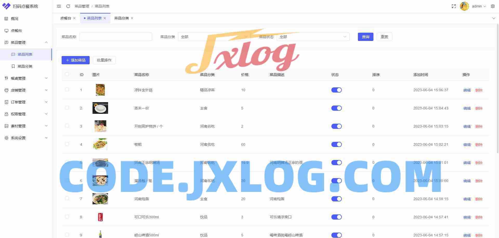 菜品管理:商户可以在管理端对店铺中的菜品进行管理,例如可以对菜品进行增加、修改和删除等功能。