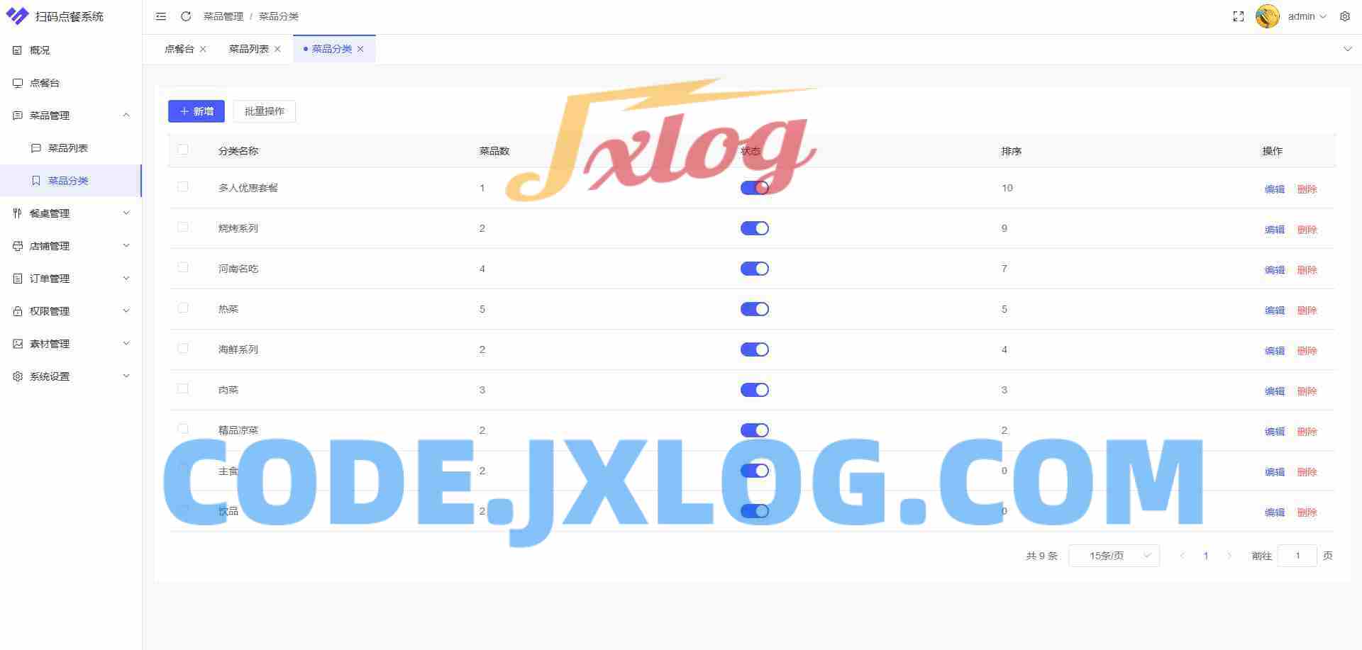 菜品分类管理:设置菜品包含的分类,商户点餐端可以根据分类快速查找商品,同时顾客点餐端也会根据菜品分类展示菜品。