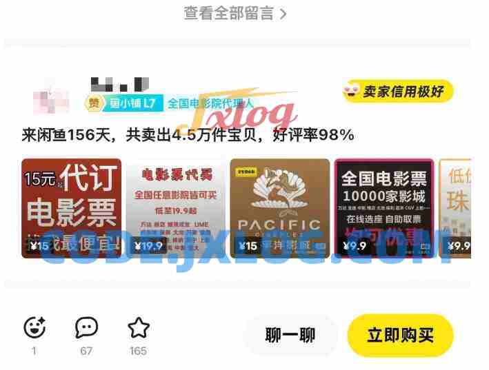 自然对于我们的存在,也显的必不可少,我们有些时候在闲鱼平台上,时常能发现一些特惠电影票,价格低至 10 元左右,且这些优惠票源的关注度极高,咨询与购买的人数络绎不绝。