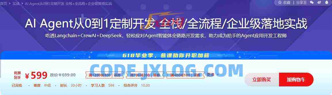 AI Agent 开发已是AI时代的关键技能,市场需求旺盛,人才紧缺。越早掌握,未来收益越大!本课从基础出发,手把手带你逐步深入,覆盖从需求分析到设计、开发、部署优化及评估的全流程。你将掌握全栈技能(LangChain、CrewAI、Deepseek、RAG、单/多Agent及工作流等)。积累10+多场景实战经验;具备智能化解决方案设计能力;全方位提升企业定制化、智能化开发综合实战能力,助力成为AI时代市场紧缺、抢手人才。