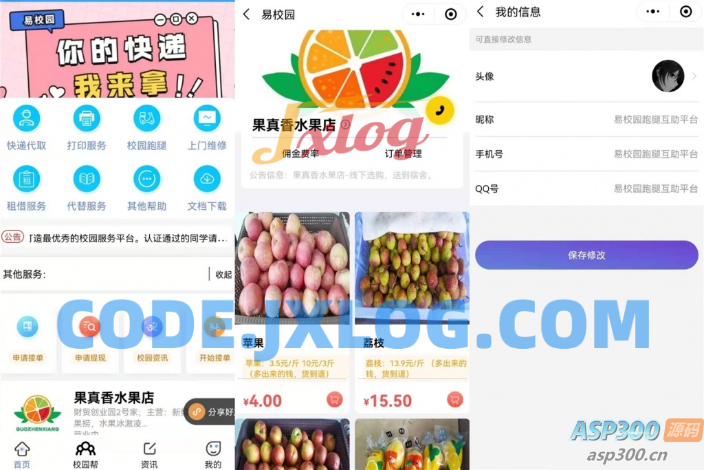 易校网校园综合跑腿小程序源码修复运营版,带服务端+客户端+前端+文档说明。