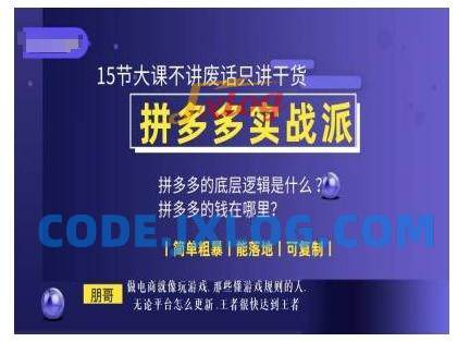 朋哥电商(拼多多实战派),15节大课不讲废话只讲干货,简单粗暴 能落地 可复制