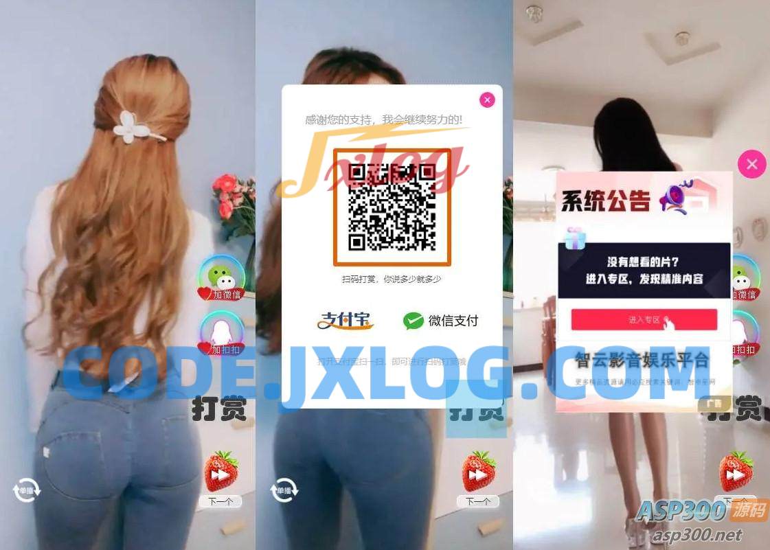 H5随机短视频滑动版带打赏源码,可封装APP软件或嵌入式观看,网站引流必备源码!数据来源抖音和快手官方短视频链接,无任何违规内容!可自行添加广告等等!