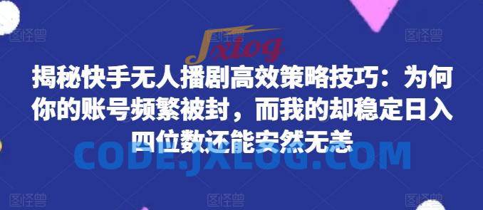 快手无人播剧高效策略技巧:为何你的账号频繁被封,而我的却稳定日入四位数还能安然无恙