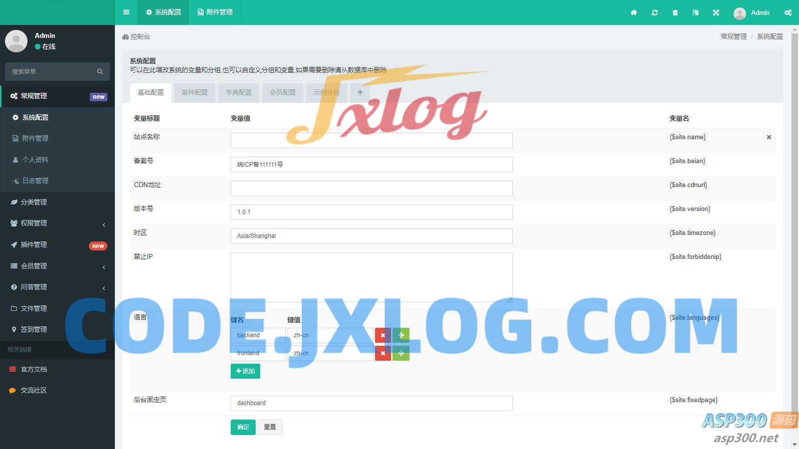 3、数据库导入成功后登陆后台设置相关资料,尤其是插件里面的信息要填写正确。