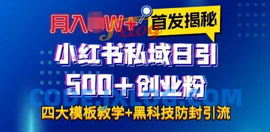 首发揭秘小红书私域日引500+创业粉四大模板,月入过W+全程干货!没有废话!保姆教程!